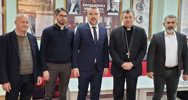 Vrhbosanski nadbiskup metropolita mons. Tomo Vukšić posjetio je danas sjedište HO “Merhamet“ MDD, gdje je razgovarao sa predsjednikom Kenanom Vrbanjacem i njegovim saradnicima.